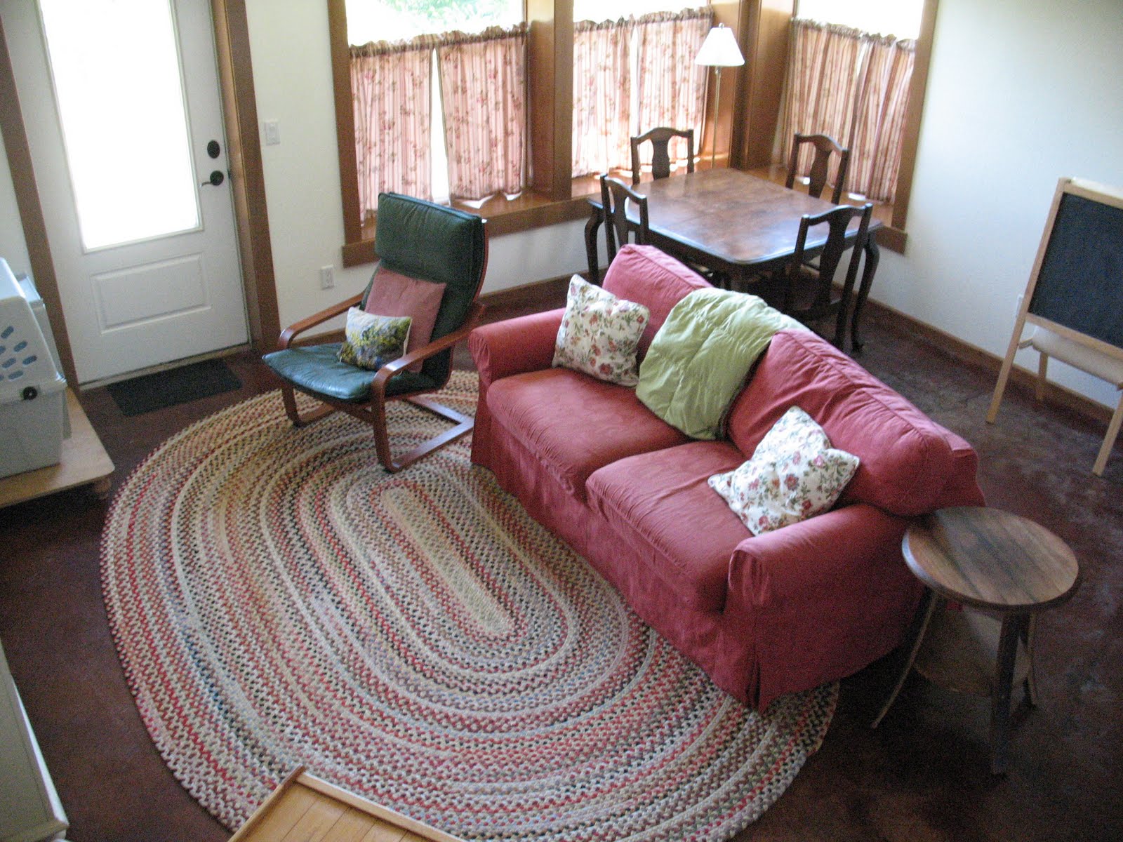 A fully finished basement flooded with daylight by large wood encased windows. Radiant heat within the rich colored surface of the acid stained concrete is inviting to bare feet and insures a cozy warmth on the coldest of gray winter days.
